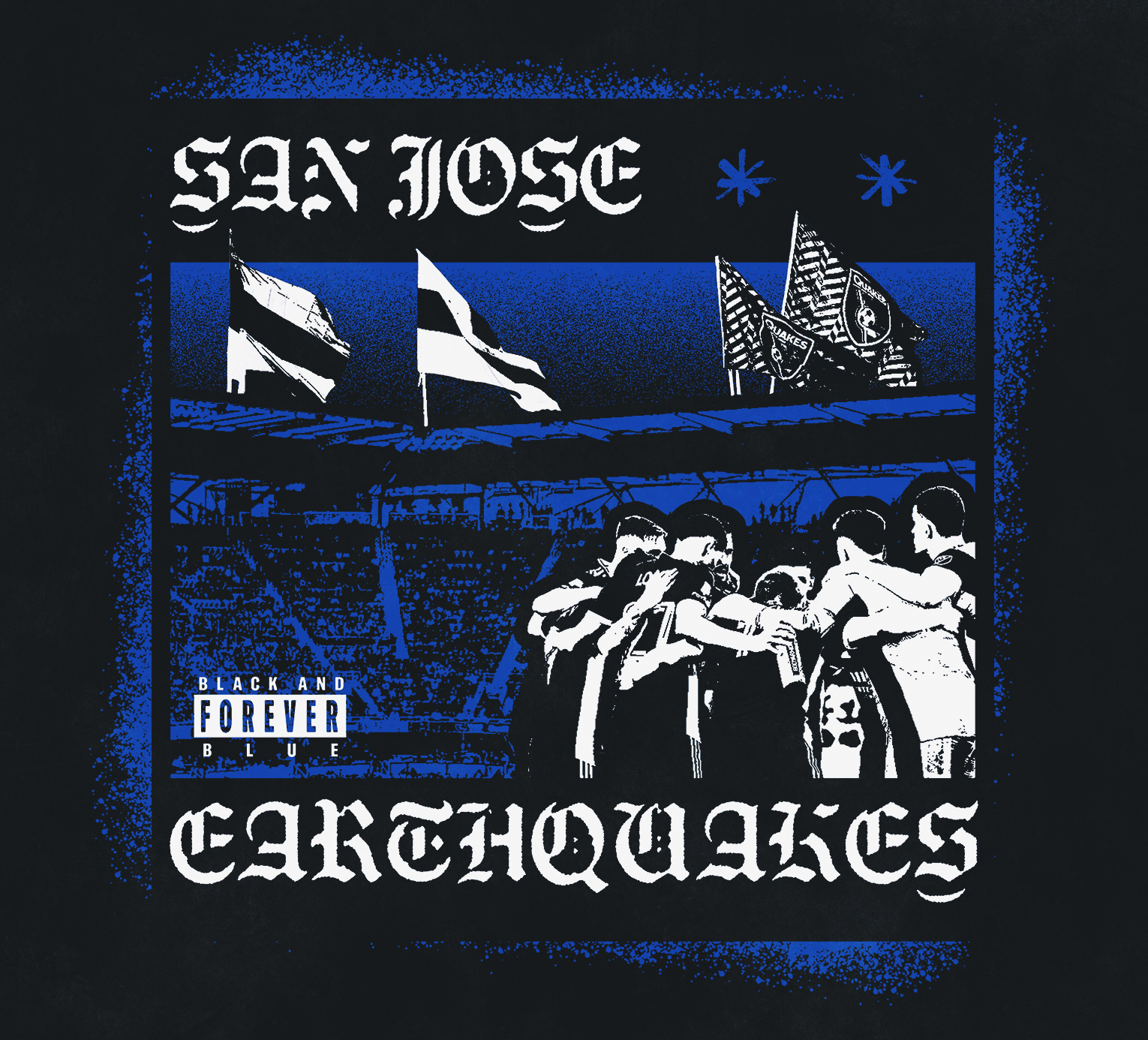 "Tour shirt" designed for the 2022 San Jose Earthquakes season, inspired by the storied music scene in San Jose.